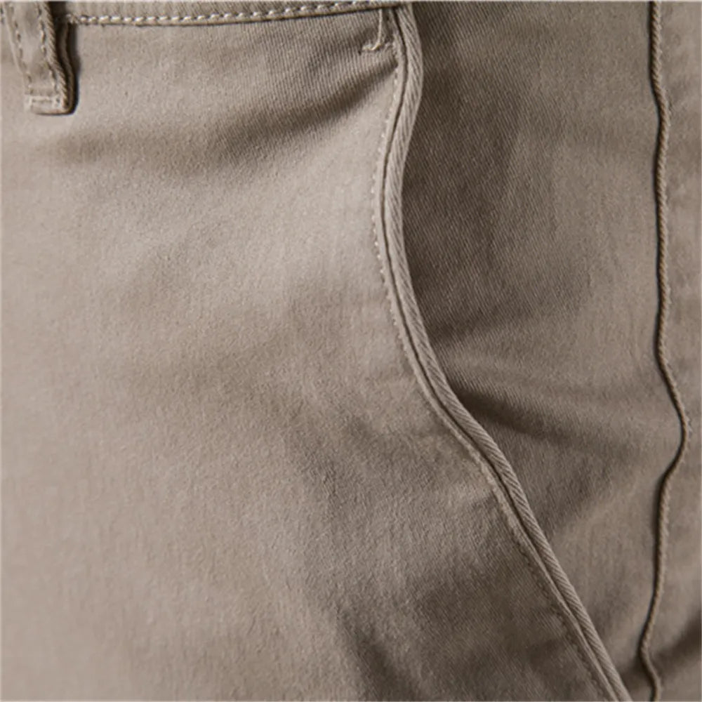 Casual Cotton Slim Fit Solid Color Men's Trousers - Spring/Autumn