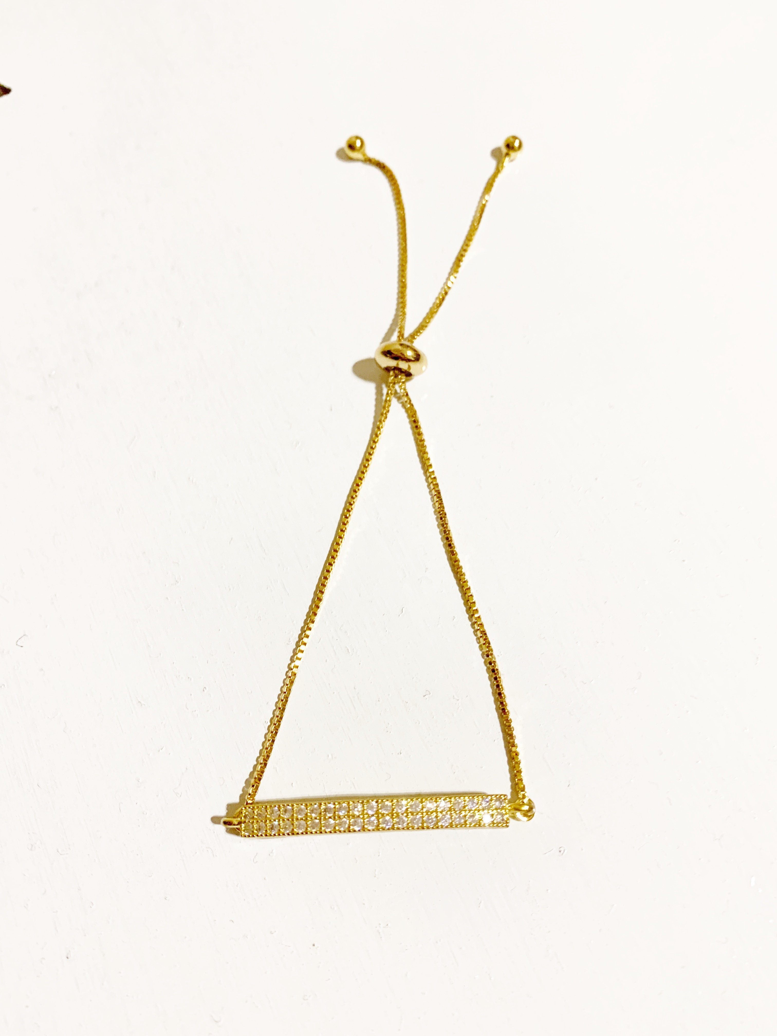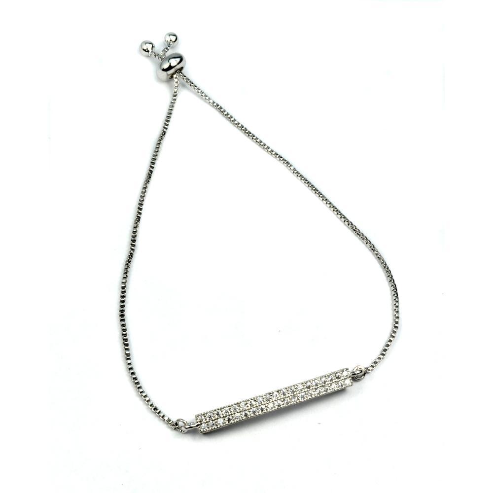 Add a touch of elegance to your outfit with this stunning CZ Bar Bracelet. Made with high-quality cubic zirconia stones set in a sleek bar design, this bracelet is perfect for both everyday wear and special occasions. The delicate chain has an adjustable slider for a comfortable fit on any wrist size. Whether you wear it alone for a minimalistic look or stack it with other bracelets for a more statement style, this CZ Bar Bracelet is sure to become a favorite in your jewelry collection. Give it as a gift to a loved one or treat yourself to this beautiful piece that will add a touch of sparkle to any ensemble.
