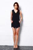 V neck sleeveless H line one piece dress; Soft fabric with crepe-like surface;