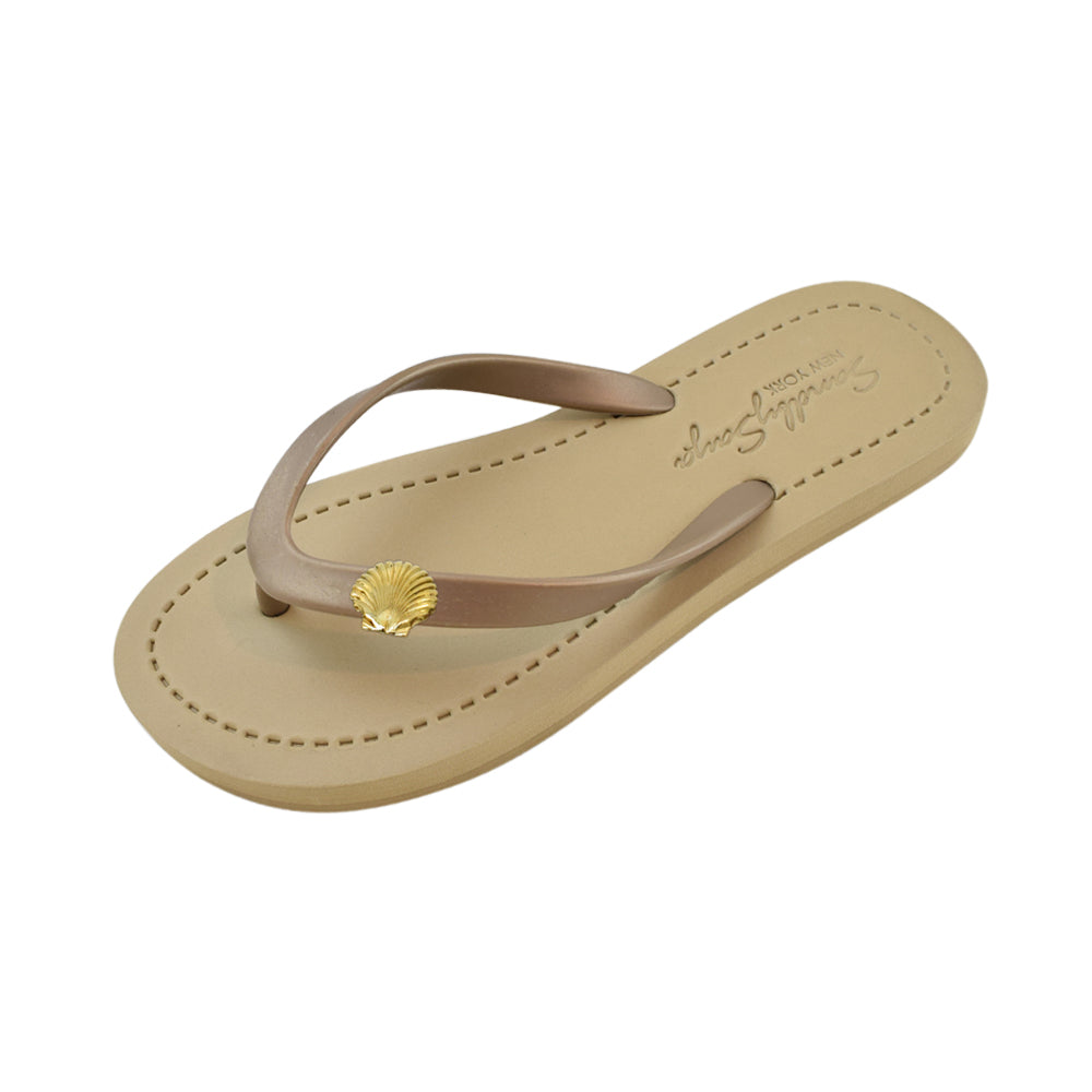 Gold Shell - Studs Charm Embellished Women's Flat Flip Flops Sandals