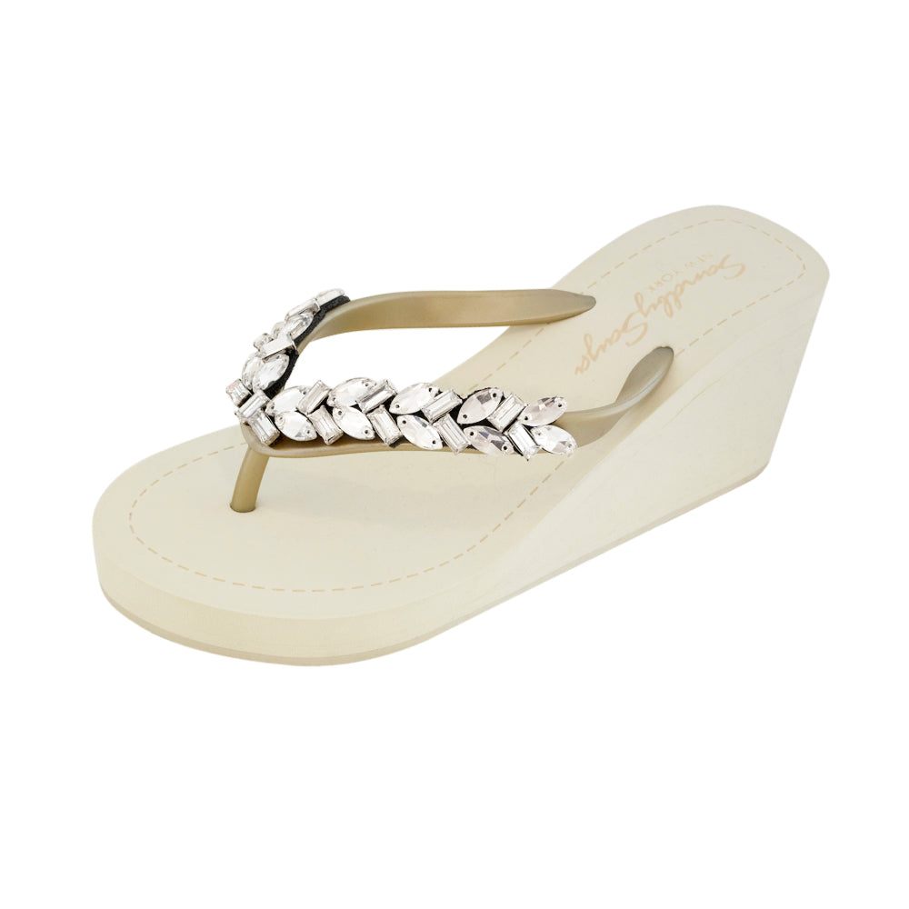 Greenwich - Rhine Stone Crystal Embellished Women's High Wedge Flip Flops Sandal
