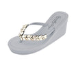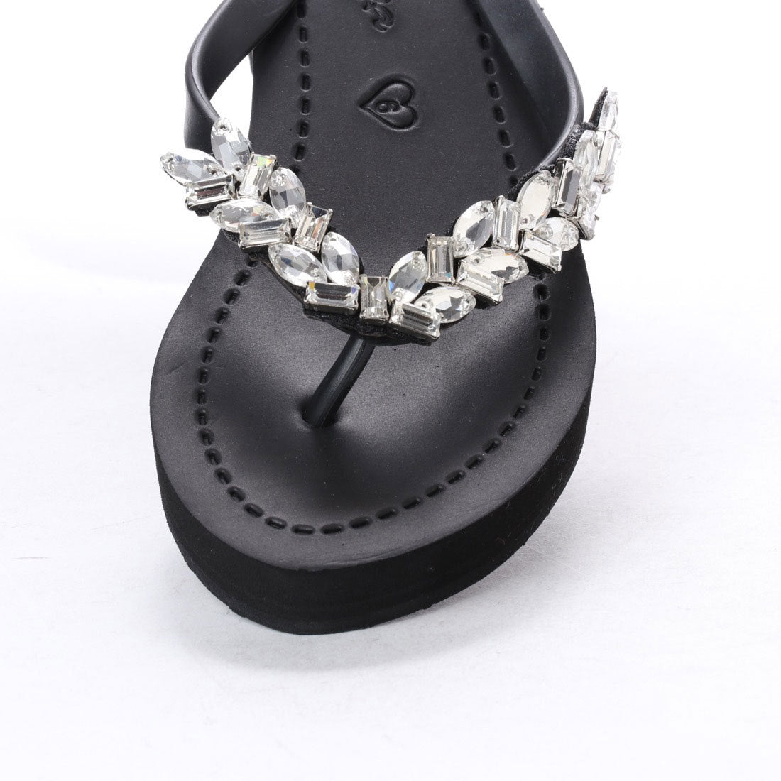Upgrade your summer shoe collection with the Greenwich Rhine Stone Crystal Embellished Women's High Wedge Flip Flops Sandal and step out in style this season.