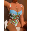High Waist Push-Up Bandage Floral Bikini Set - Strappy Two-Piece Swimwear