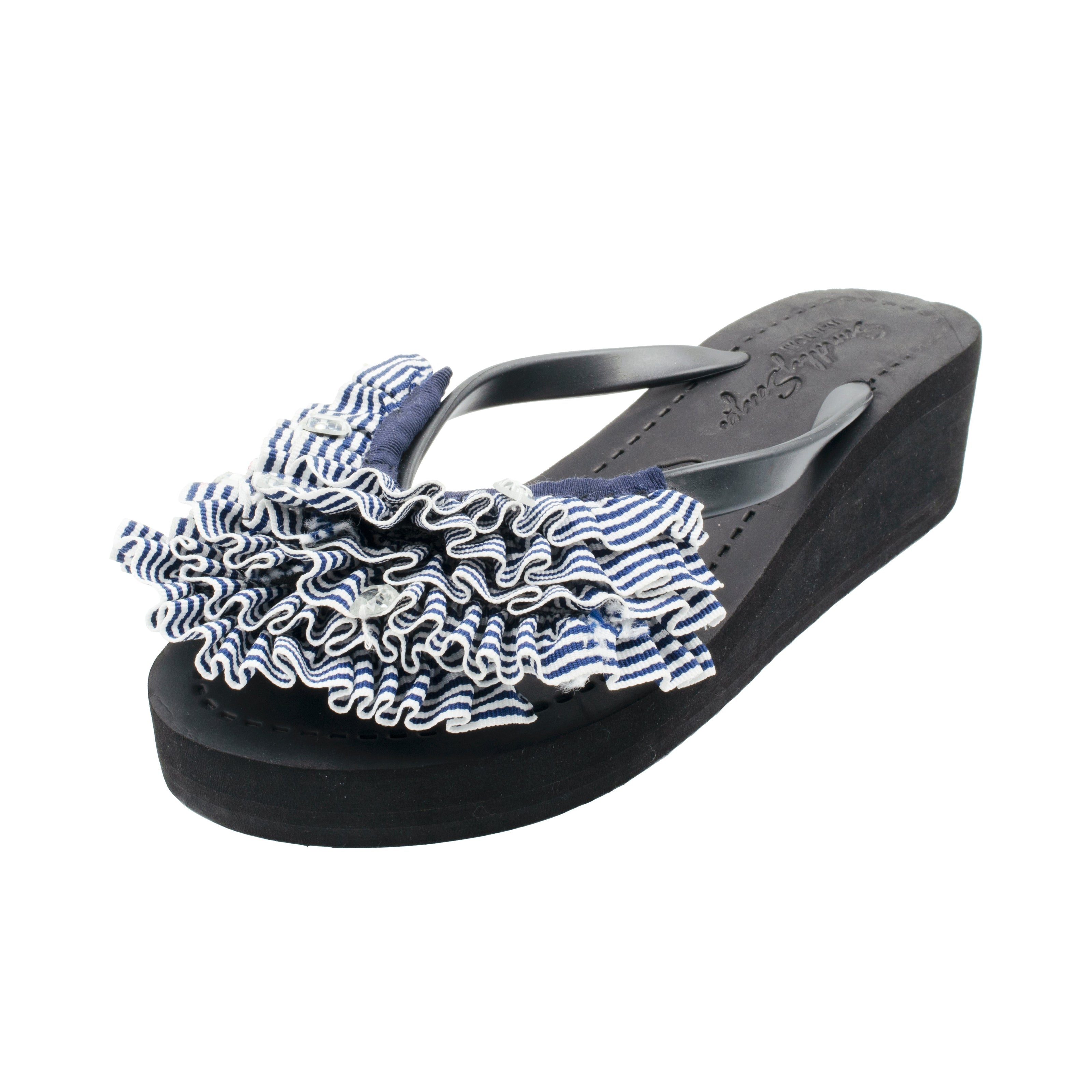 Marine Stripe Ruffle - Triple Rockaway - Women's Mid Wedge Flip Flops