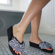 Add a touch of nautical flair to your summer wardrobe with our Marine Stripe Ruffle Triple Rockaway Women's Mid Wedge Flip Flops. These stylish and comfortable flip flops feature a classic striped pattern in shades of navy blue and white, accented with a charming ruffle detail for a feminine touch. The mid wedge heel adds a subtle lift to elevate your look while still providing all-day comfort. Perfect for beach days, picnics, or any casual outing, these flip flops are sure to become a staple in your warm-weather wardrobe. Upgrade your summer style with the Marine Stripe Ruffle Triple Rockaway Women's Mid Wedge Flip Flops.