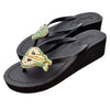 Step out in style with these stunning Pear Rhinestone Mid Wedge Flip Flops. These elegant flip flops feature a beautiful pear-shaped rhinestone design on the strap, adding a touch of sophistication to your look. The mid wedge heel provides a comfortable lift, making these flip flops perfect for both casual and dressy occasions. The cushioned footbed ensures all-day comfort, while the durable rubber sole offers stability and traction. Whether you're heading to the beach, running errands, or attending a summer wedding, these Pear Rhinestone Mid Wedge Flip Flops are the perfect choice to elevate your outfit. Choose from a range of colors to suit your personal style and step out in confidence and style with these chic and versatile flip flops.