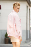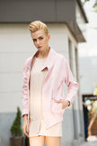 Oversized jacket with silver metal press studs; Zipper in front, fully lined.