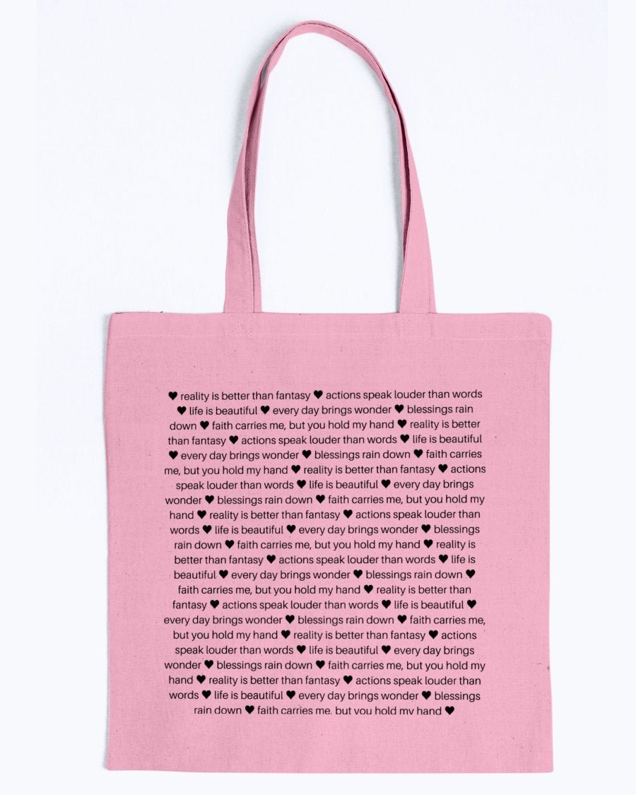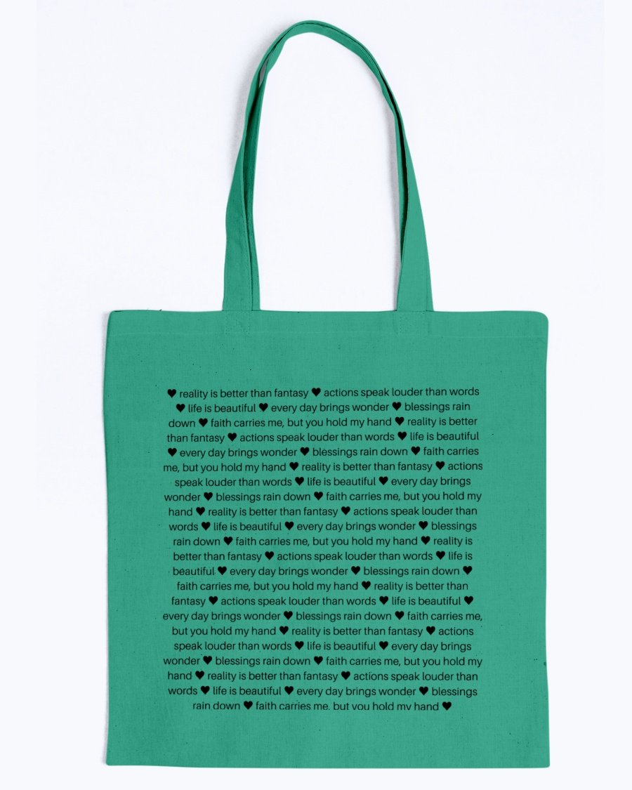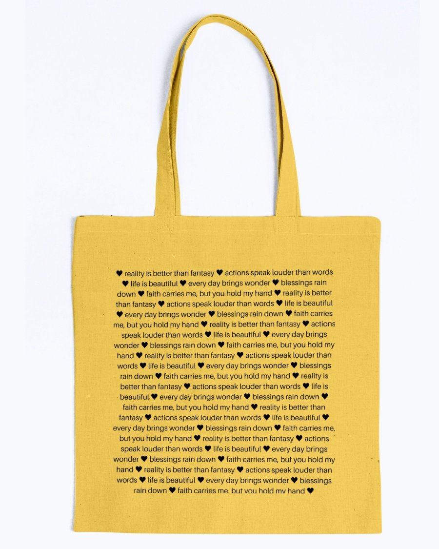 This tote features a sentimental quote printed on the front, adding a touch of personal flair to your look. The spacious interior provides plenty of room for all of your essentials, while the sturdy handles make it easy to carry. Whether you're heading to the office or out for a day of shopping, this tote is sure to become your new favorite accessory.