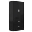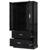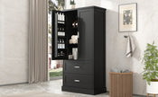 Tall Bathroom Storage Cabinet, Cabinet with Two Doors and Drawers, Adjustable Shelf, MDF Board, Black
