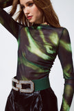 Add a groovy touch to your wardrobe with our Tie-Die Top in Green and Black. This eye-catching top features a trendy tie-die print in shades of green and black, perfect for adding some retro flair to your look. The lightweight fabric is soft and breathable, making it ideal for year-round wear. The relaxed fit and flowy silhouette ensure a comfortable and flattering fit for all body types. Pair it with your favorite jeans for a casual weekend look or dress it up with a skirt and heels for a night out. Stand out from the crowd and make a fashion statement with our Tie-Die Top in Green and Black.