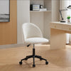 Velvet fabric office chair, mid back adjustable rotating computer chair, black legs, cushioned office chair with wheels ,White
