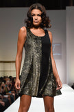 Elevate your style with this stunning gold dress for women. Crafted with a luxurious metallic fabric, this dress shimmers and shines in the light, guaranteed to turn heads wherever you go. The form-fitting silhouette is both elegant and flattering, hugging your curves in all the right places. The sleeveless design and high neckline add a touch of sophistication, making this dress perfect for special occasions or a night out on the town.