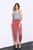 FEATURES: High waist pants with ruched waistband and gold buttons on side; Side invisible zipper; Light weight Crepe Satin fabric with a velvety shine and flow; Elastic band on back of hem.