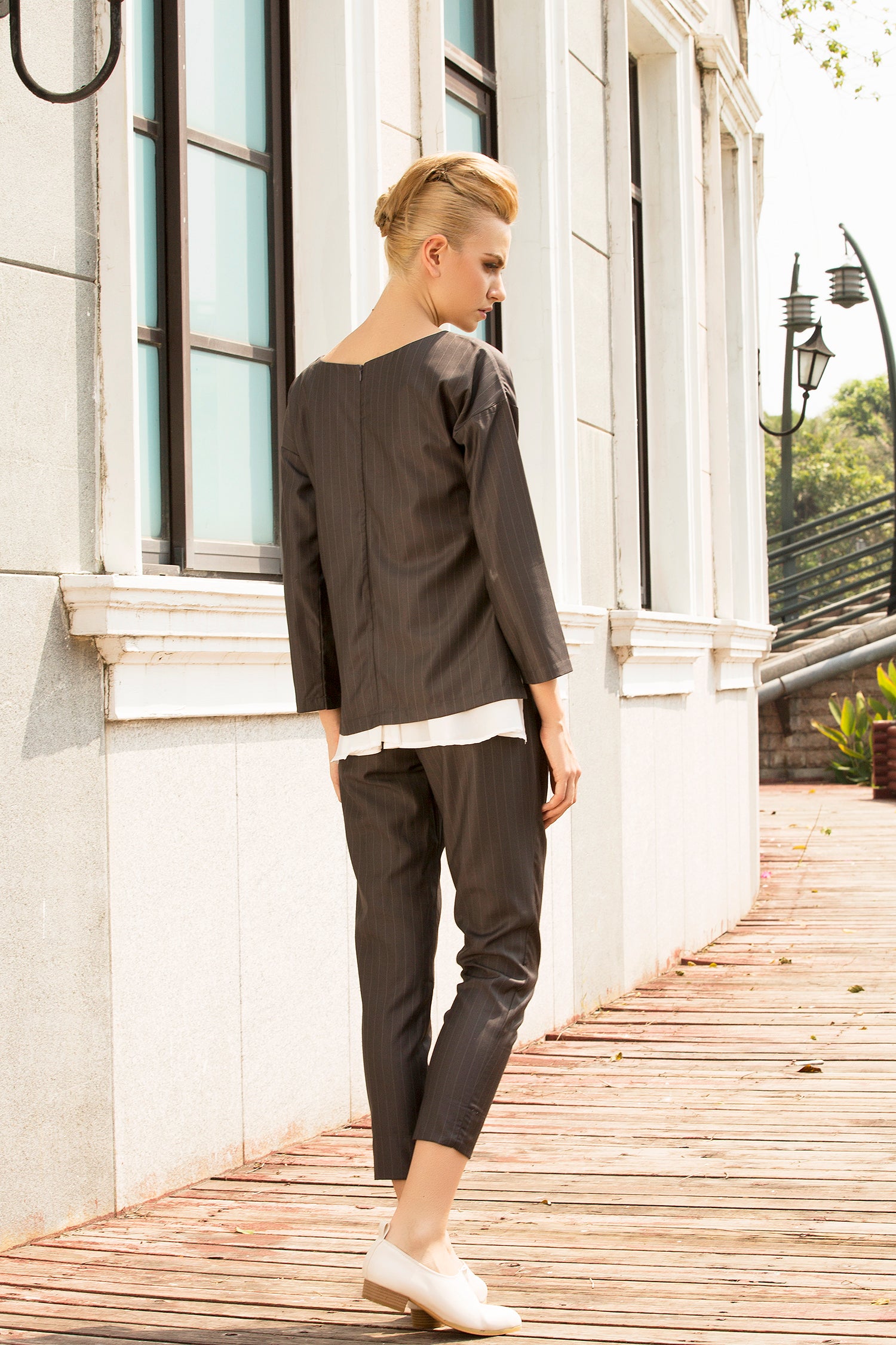 Complete the sleek look with Chill like a Gent pinstripe top.