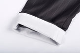 Tapered legs with foldable white fabric on hem (reverse side) ;