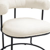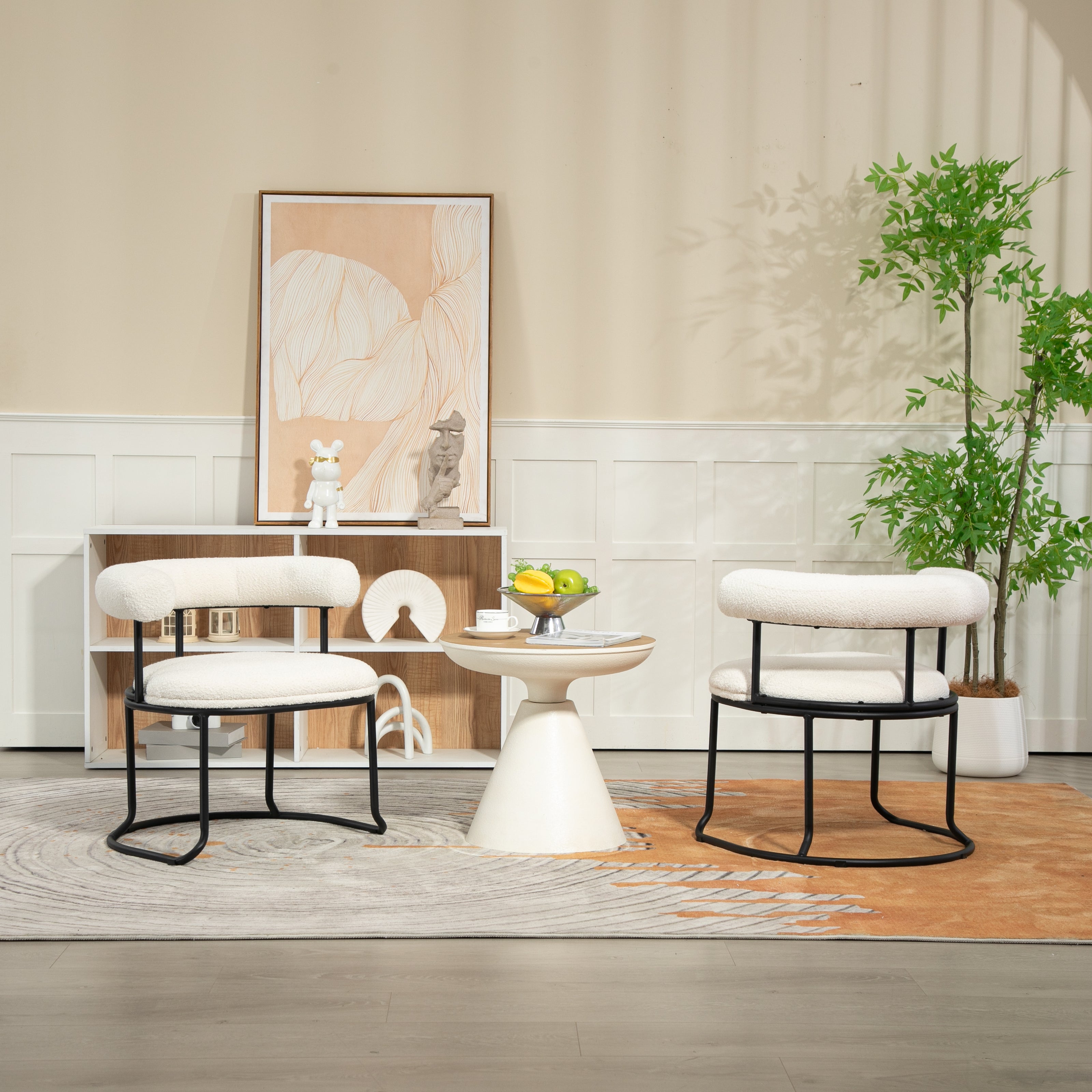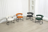 Material: This chair is mainly composed of boucle and black metal spray-painted legs, boucle, delicate texture, soft handfeel, beautiful and generous, while the metal material is hard, wear-resistant, sturdy and durable.