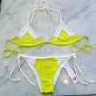 The bottom of the bikini is equally stunning, designed to complement and contour your beautiful figure. The classic bikini cut provides just the right amount of coverage, allowing you to feel confident and at ease as you soak up the sun or indulge in your favorite water activities. The side-tie detail adds a touch of playfulness and allows for easy adjustment, ensuring the perfect fit every time.