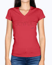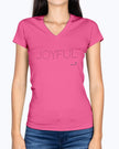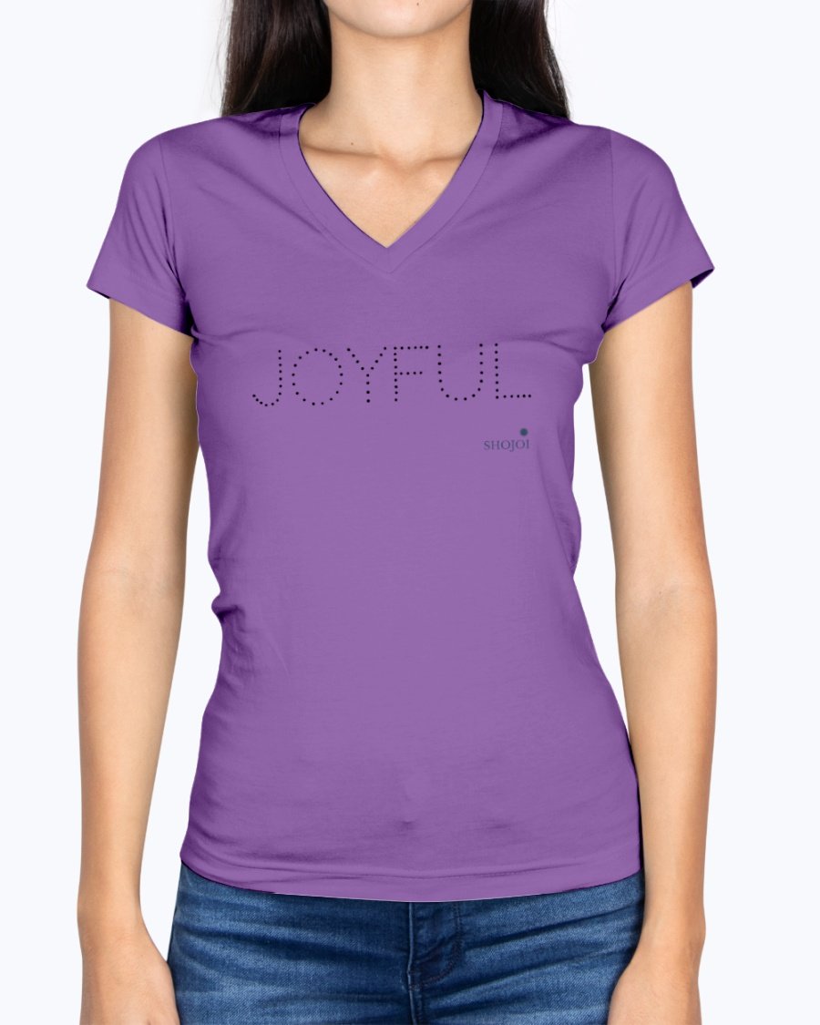 Pair this Joyful Ladies V-Neck T-Shirt with your favorite jeans or leggings for a casual and chic look. Available in a range of sizes, this t-shirt is a must-have addition to your wardrobe. Spread positivity and joy wherever you go with our Joyful Ladies V-Neck T-Shirt!