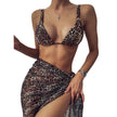 Leopard Print Suit Swimwear Sexy Bikini Set Beachwear Cover Up Three Piece Swimwear