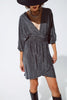 Mini Length Glitter Dress With Deep v Neck in Silver
