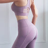New Fall Seamless Women's Fitness Apparel | Sportswear Athletic Net Yarn Splicing Women's Pocket Yoga Leggings & Yoga Set