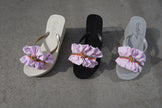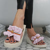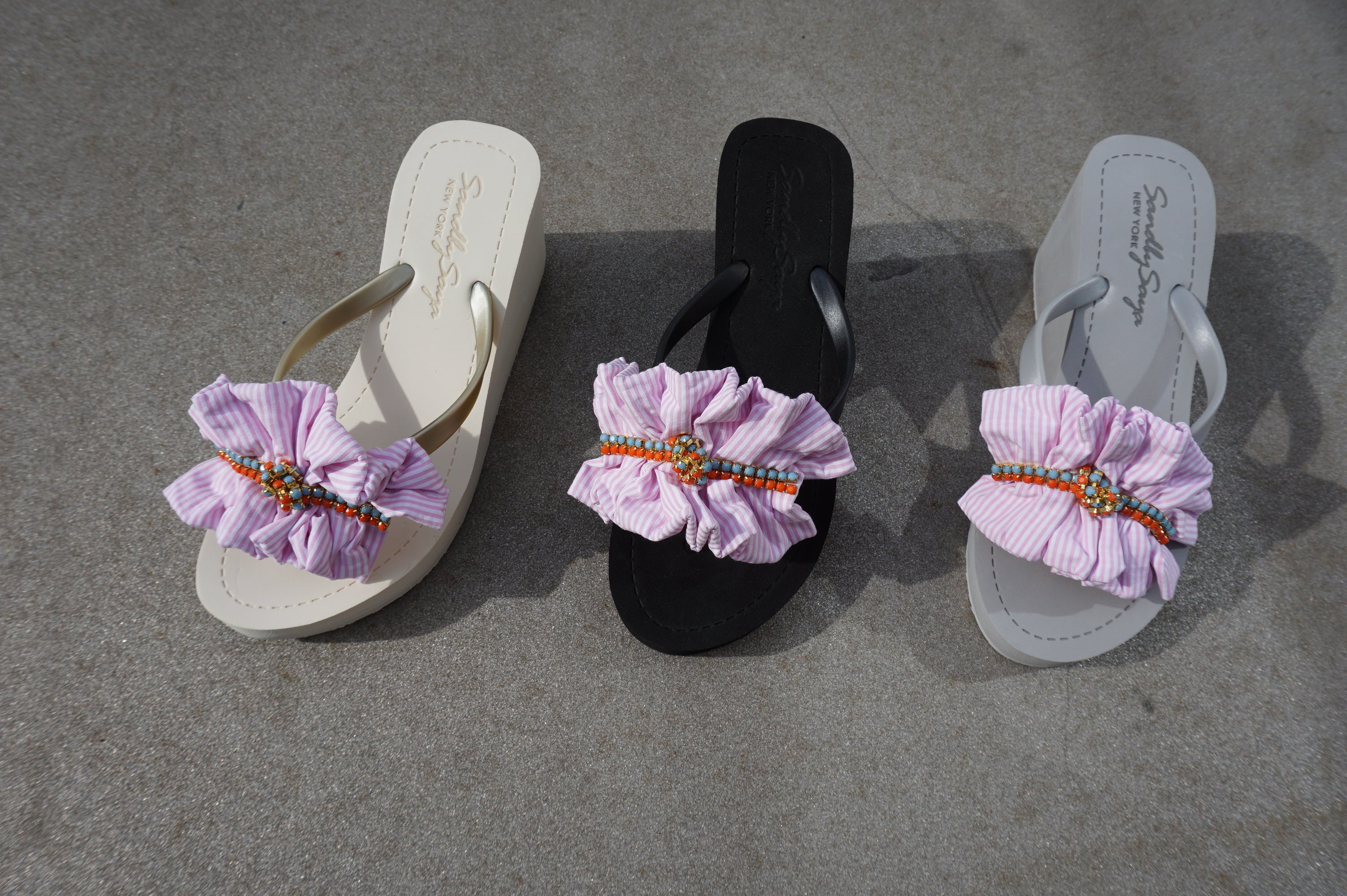 Pink Hudson -Stripe Rhine Stone Embellished High Wedge Flip Flops Sandal