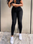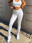 Ribbed Seamless Knit Yoga Leggings - Push Up White Femme Gym Tights