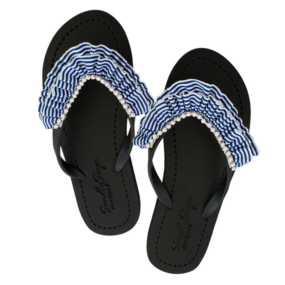 Rockaway Stripe Ruffle - Embellished Flat Flip Flops Sandal