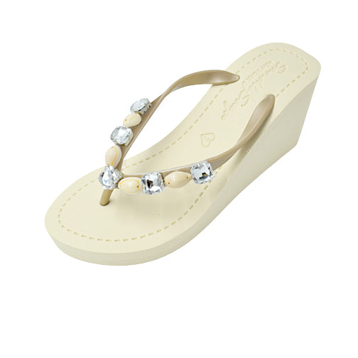 Shell Beach-Rhine Stone Embellished Women's High Wedge Flip Flops Sandal