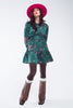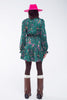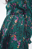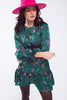 Short Printed Dress With Tiered Skirt and Ruffled Cuff in Forest Green