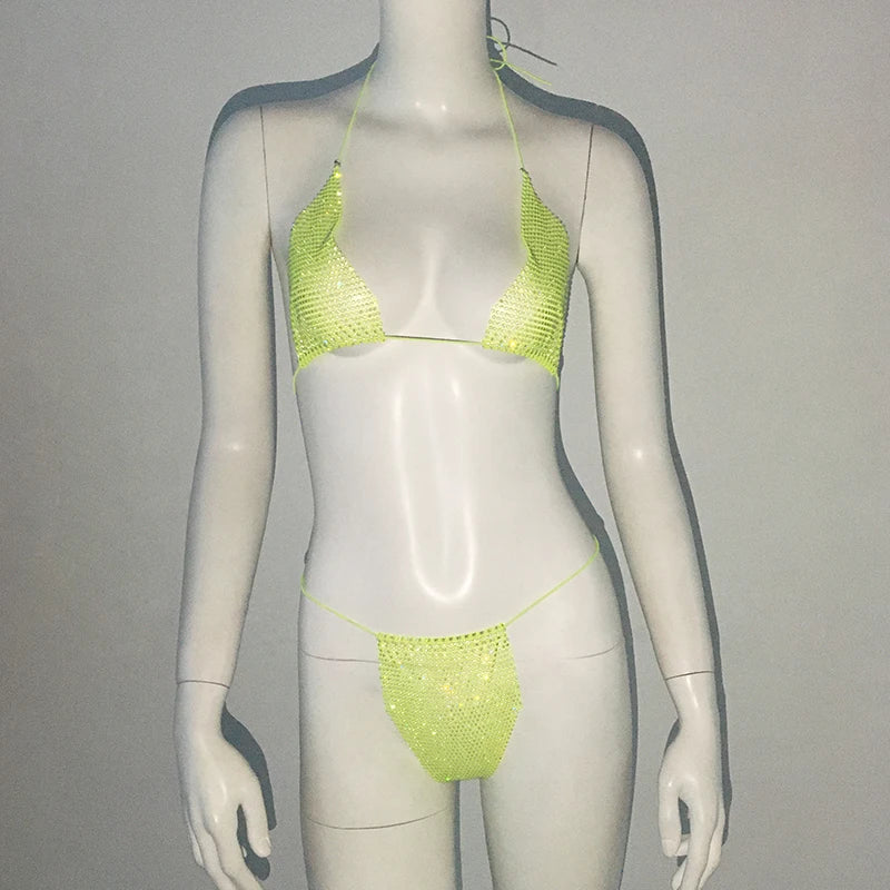 Sparkling Rhinestone Fishnet Bikini - Sexy Sheer Rave & Beach Set